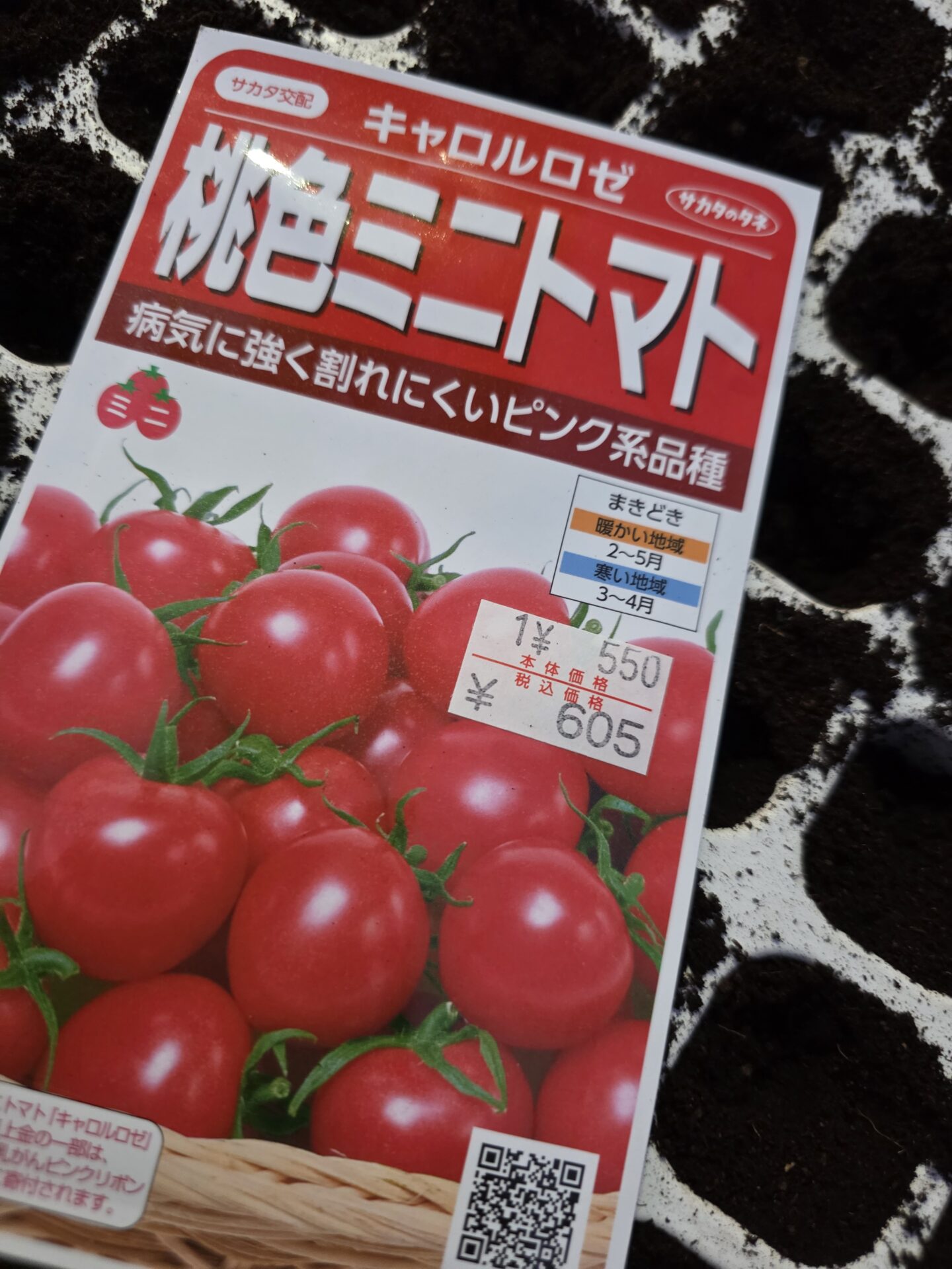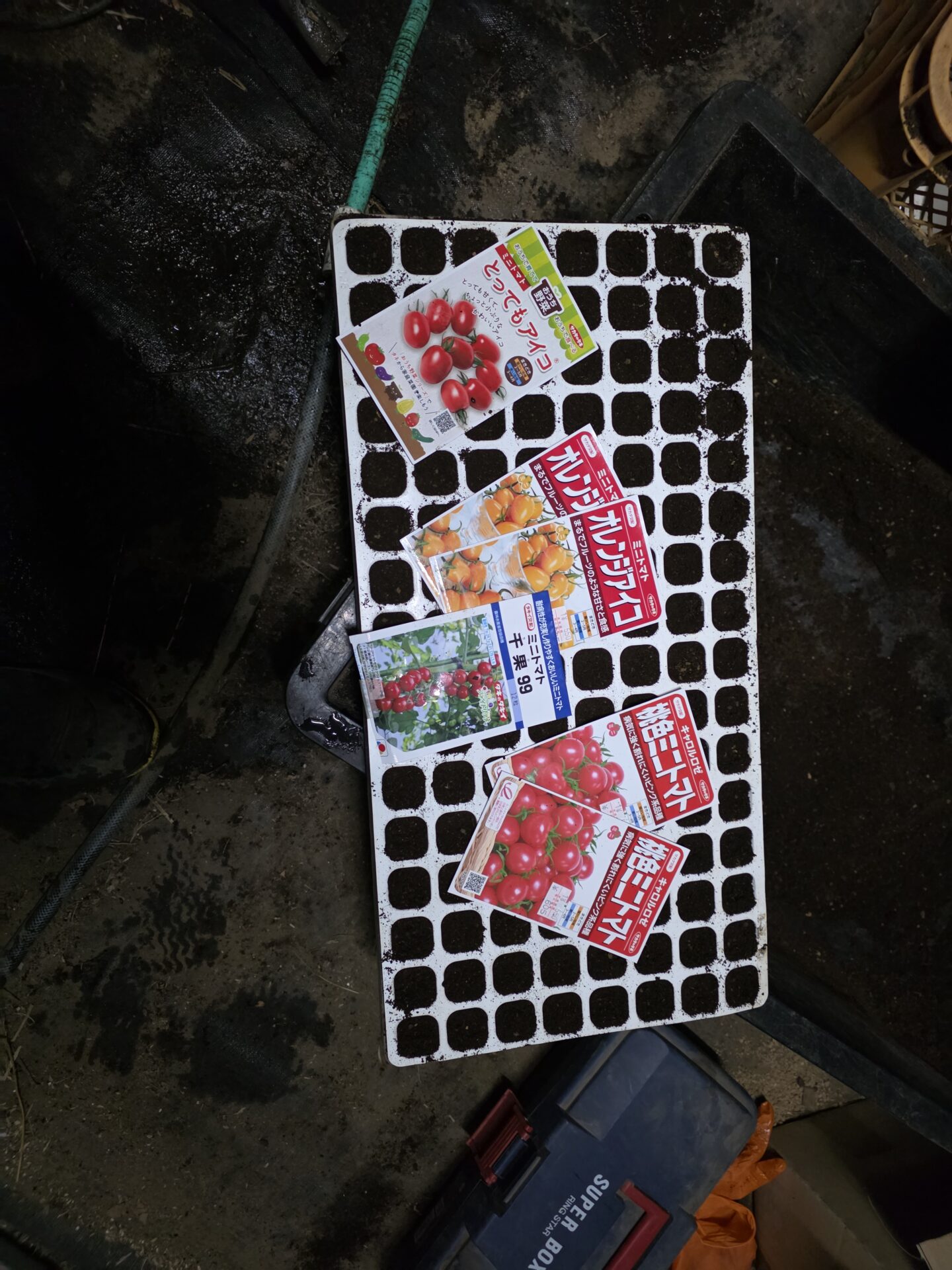 ミニトマト:キャロルロゼとアイコを1袋づつ。キングバリアを30個播種