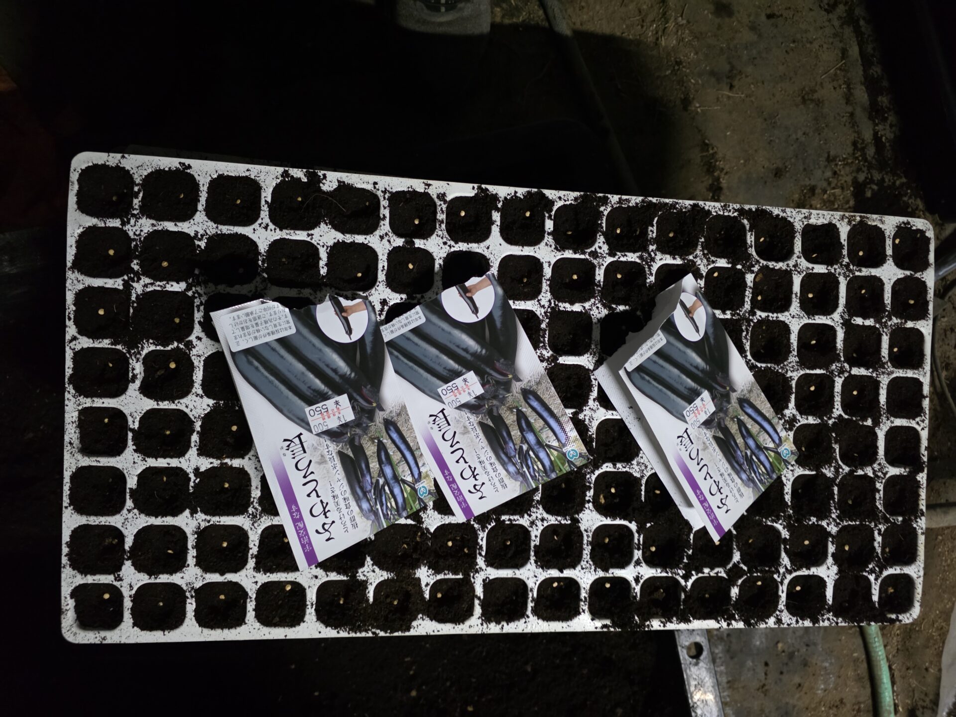 ナスとピーマンの種まき。ちょっと早いけとトマトの一部も種まき
