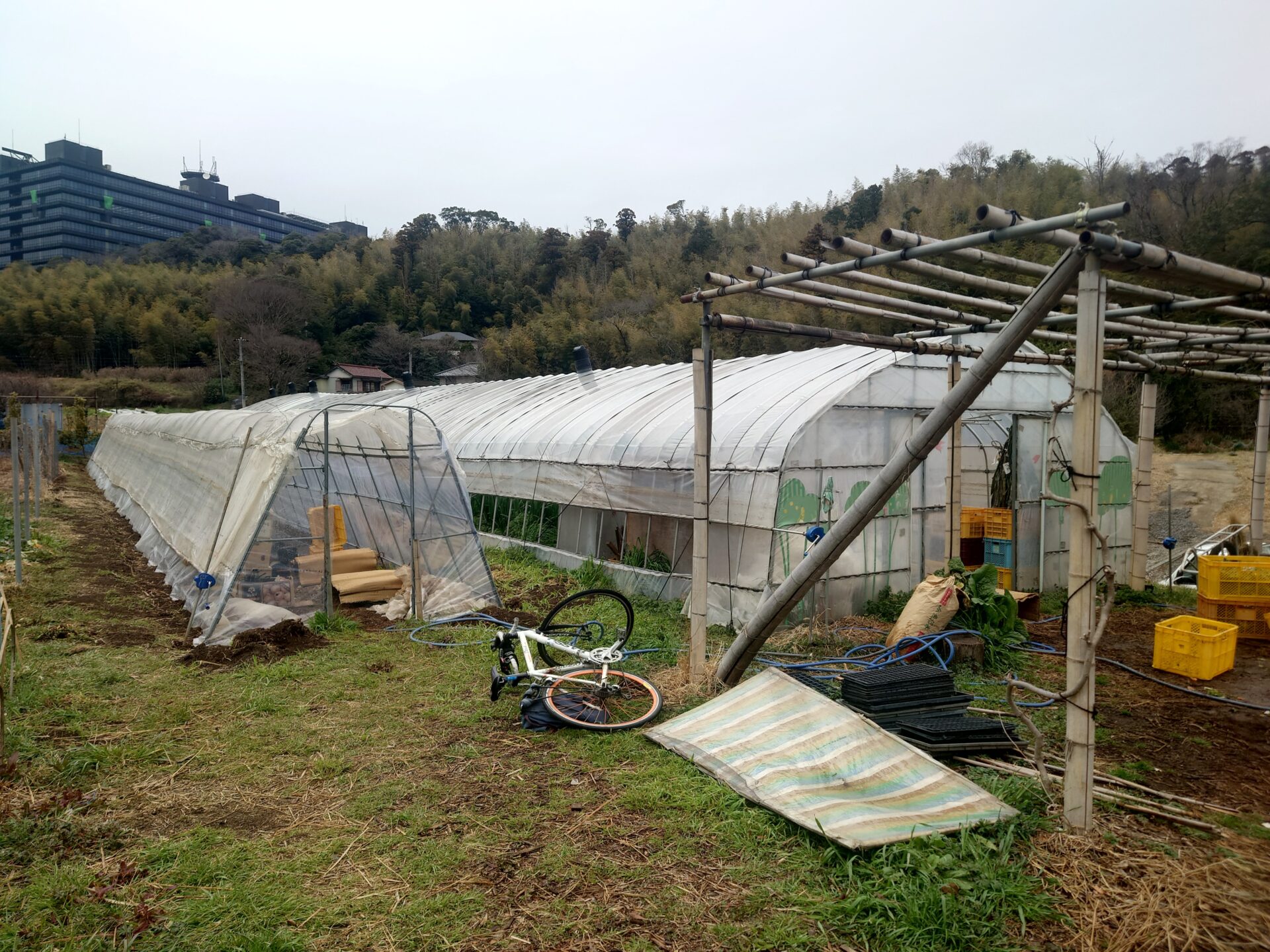 虫よけの網が付いて無いです。嘘でしょう。ハウスの意味ないじゃん。しかし虫の被害は無いそうです。自家採取で種を紡いでいるからでしょうか?恐るべしSHOfarm。