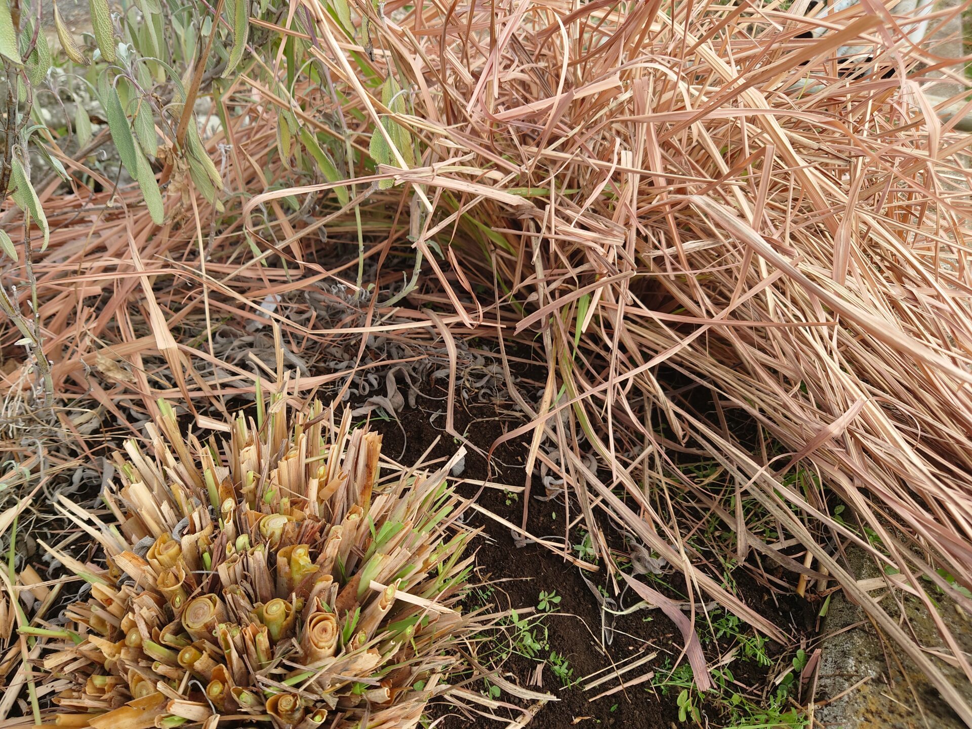 レモングラスは、熱帯地域が原産地です。主な原産地は東南アジアやオセアニア地域で特にインド、スリランカ、タイ、マレーシアなどが挙げられます。これらの地域は高温多湿な環境が特徴的です。日本の冬とは縁遠いので一般的には鉢上げして、屋内に移動させることが推奨されていますが、幸い湘南地域では屋外でも越冬させることができます。今年は初の東インドレモングラスの越冬にも挑戦しました。