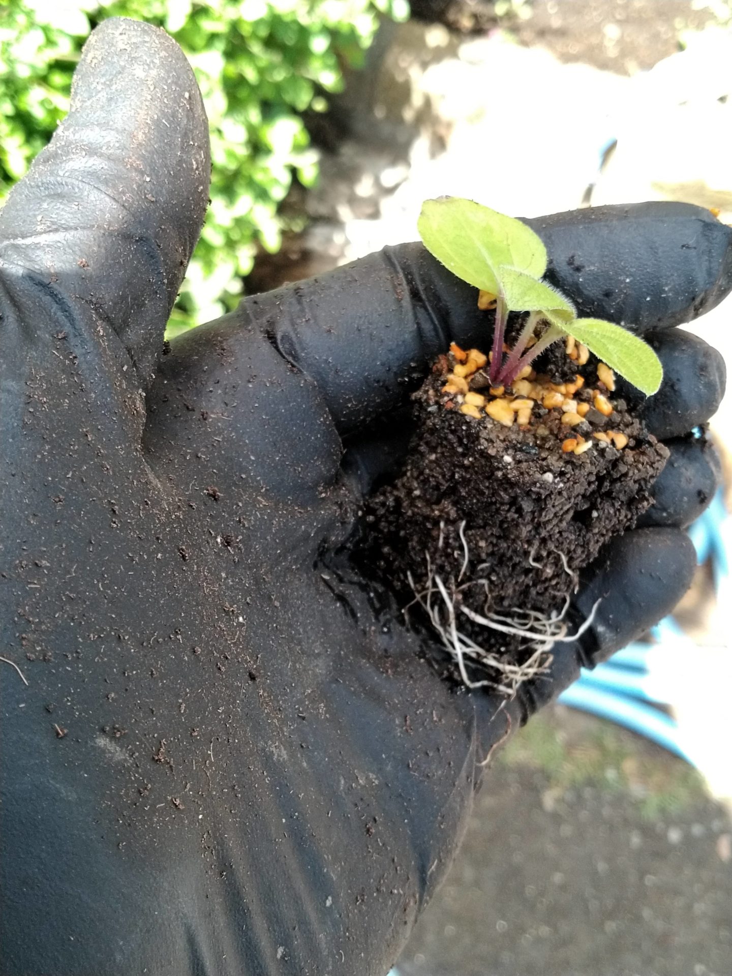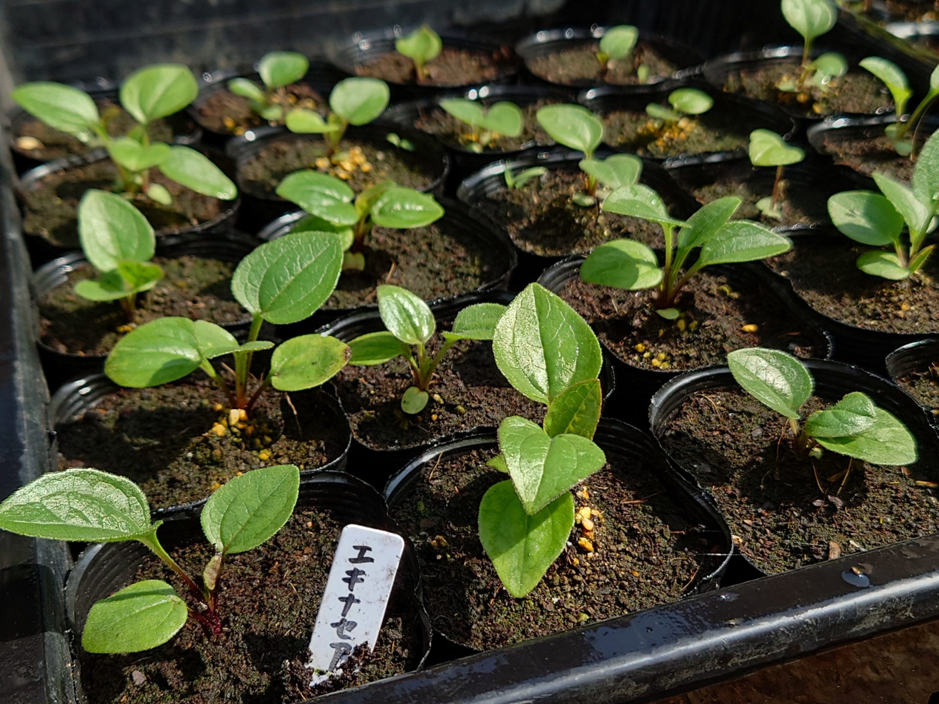 セルトレイからポットに鉢上げをしました。一か月前と比べて地上部は大きくなっていなかったのですが根が巻きはじめてたので実施しました。鉢上げすると成長の勢いが加速します。根の巻き具合を確認することは育苗で大切なポイントです。