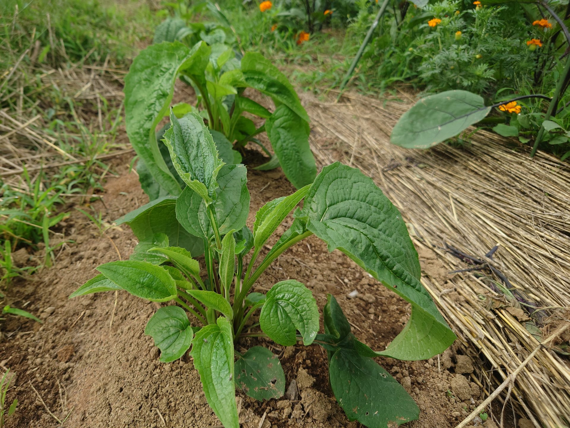 霜の心配もなくなったので畑にエキナセアの苗を植え付けました。周りにはウッドチップがひいてあります。ウッドチップは保湿、泥はね予防、雑草抑制になり、微生物や小さな昆虫の家にもなるので多様な生態系が生れます。生態系からの産物はエキナセアの成長に大切な成分が生まれます。