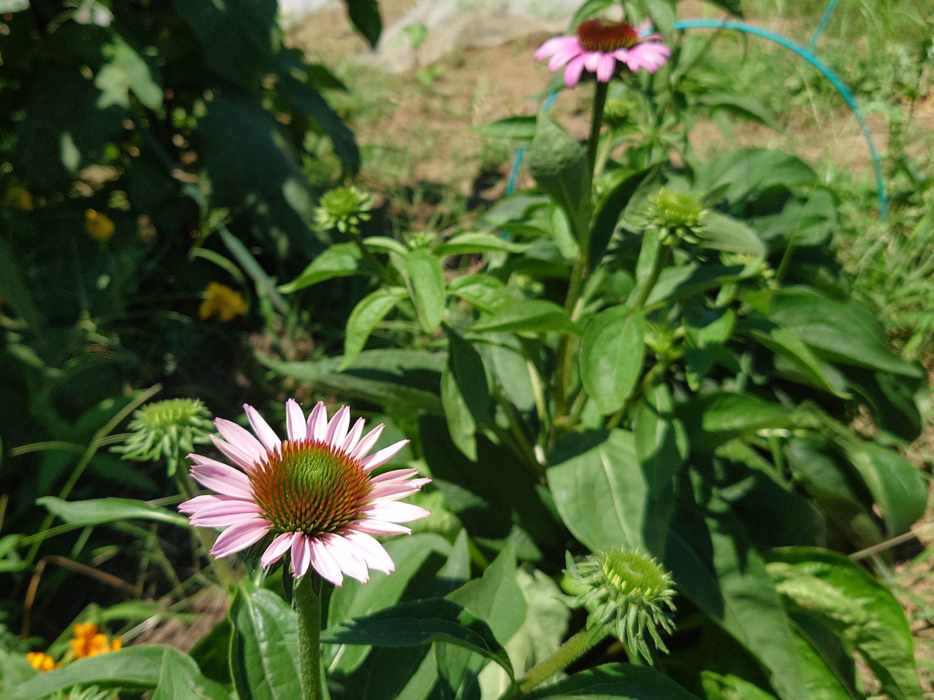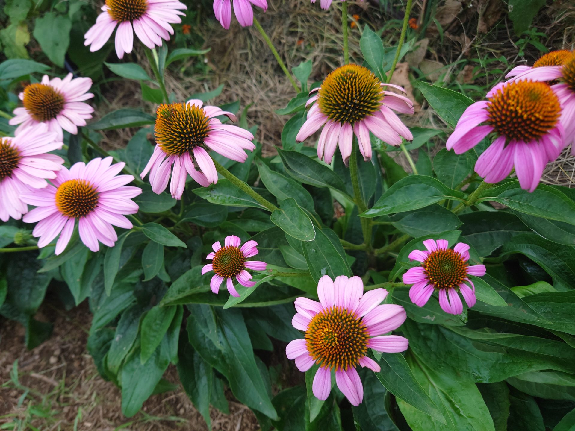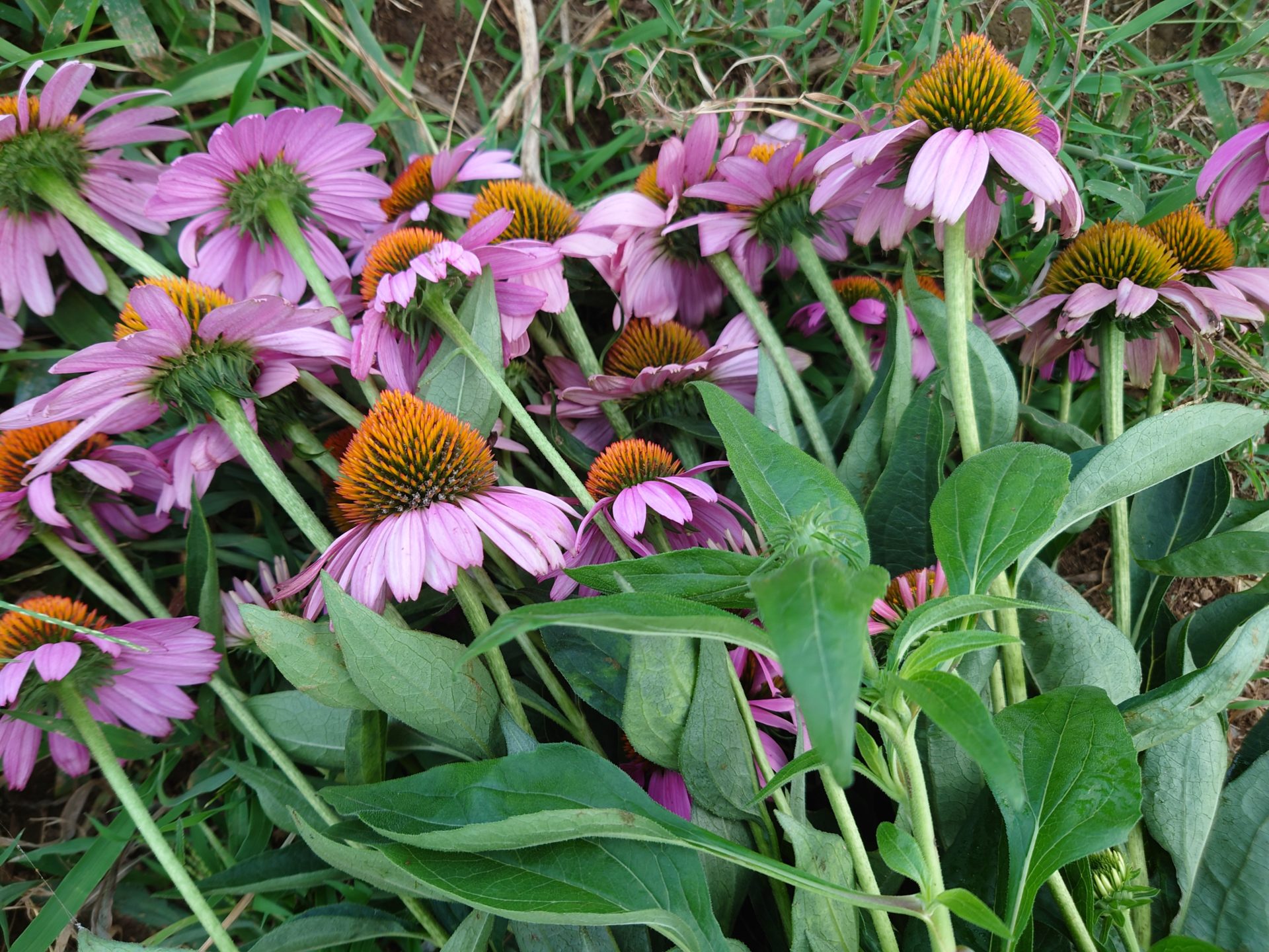 エキナセアの収穫を始めました。株元の葉は残して伸びた茎と花を摘み取りました。エキナセアの葉は分厚くガサガサしていますので触るとびっくりすると思います。収穫作業には手袋と長袖が必須アイテムです。